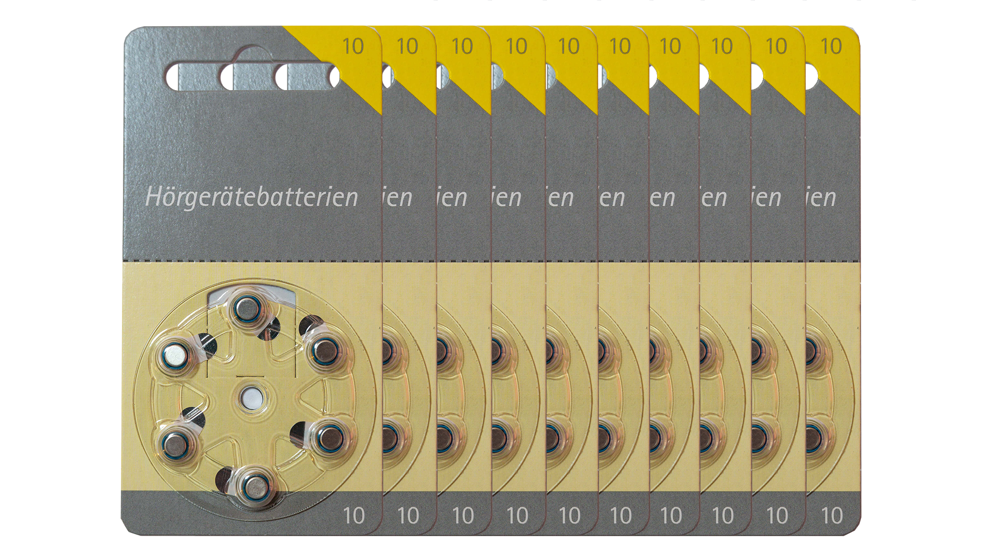 - Power auf Vorrat: 10 Blister mit je 6 Stück, insgesamt 60 Zink-Luft Hörgeräte-Batterien, Farbcode Gelb / Typ 10 im Vorratspack.